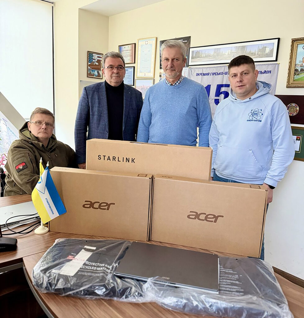 Грудень Допомога воїнам триває. Атомпрофспілка спільно з ППО НАЕК «Енергоатом» придбали оргтехніку та супутникові термінали Starlink для воїнів 155-ї окремої механізованої бригади імені Анни Київської. Підрозділ виконує бойові завдання на одному з найгарячіших напрямків — поблизу Покровська.